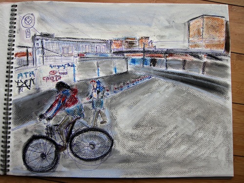 Network work. Images captured from Google street view, transcribed in pastel, photographed and released back into the wild on